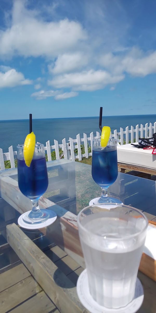 If you have a chance, don’t forget to explore the charming outdoor terrace after your meal. Out here, you’ll find comfortable seating under sunshades, perfectly positioned to enjoy the soothing sound of the waves and the gentle coastal breeze. The patio offers a few intimate tables for couples or a group of friends, making it an ideal location for a special occasion or simply a moment of relaxation while enjoying delightful music in the background.